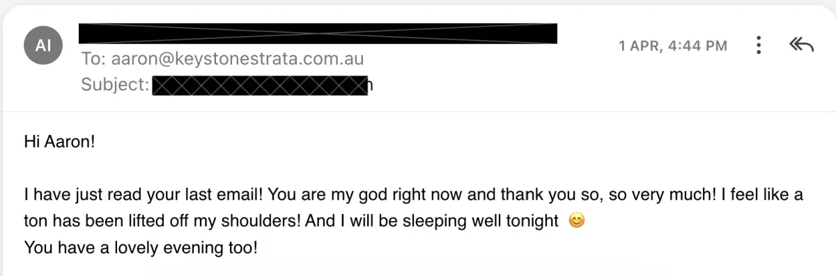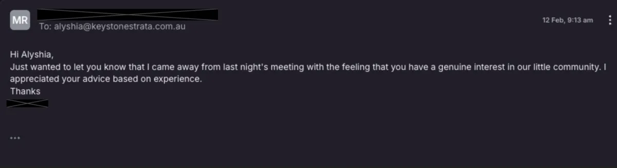 No. You are supported by a structured service team, overseen by experienced strata managers, with clear escalation pathways and accountability.